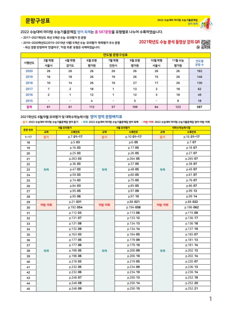 1 2022 수능대비 마더텅 수능기출문제집 영어 독해 문제편 정답표시x Pdf